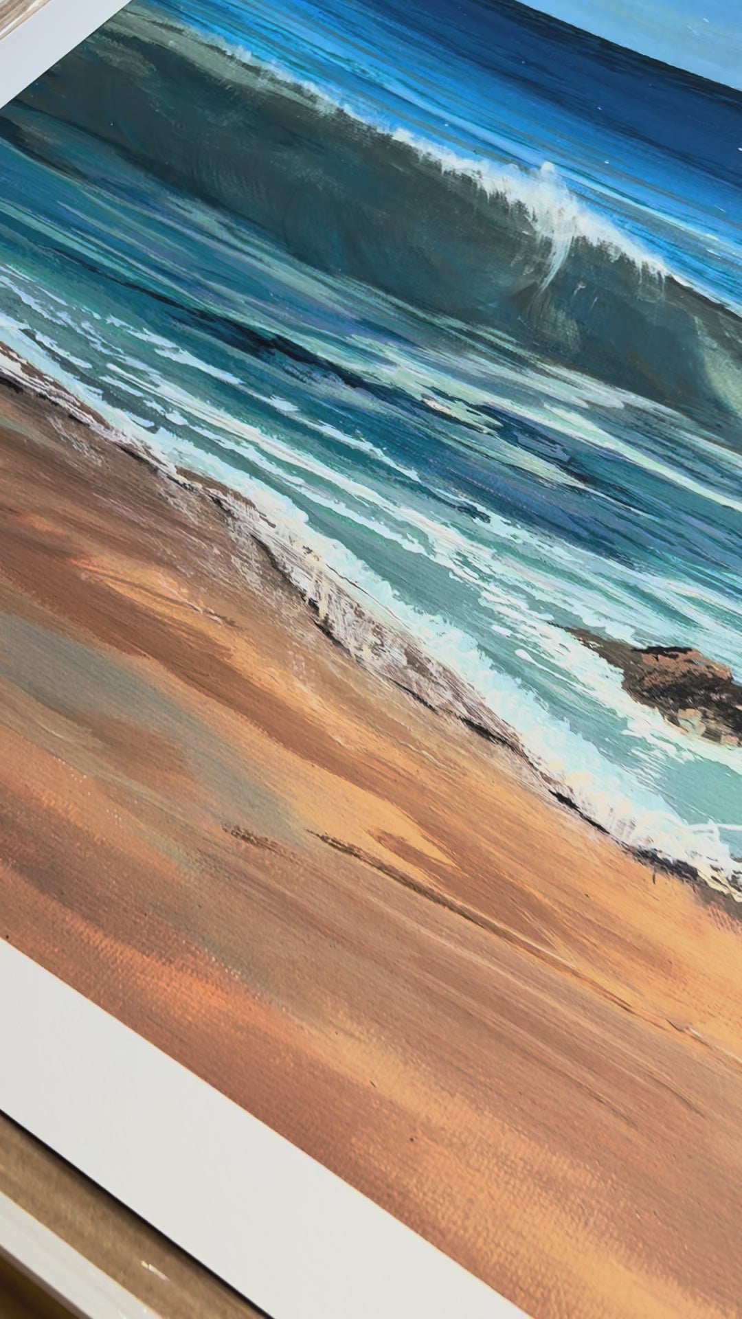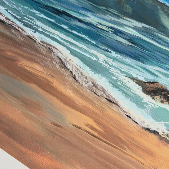 Painted as a collection of Cornish Coast seascapes! This one is based on Harlyn Bay, North Cornwall, on a beautiful August blue sky day. We did a 7mile coast walk and it was super inspirational, here is one of the results of that memory filled day!