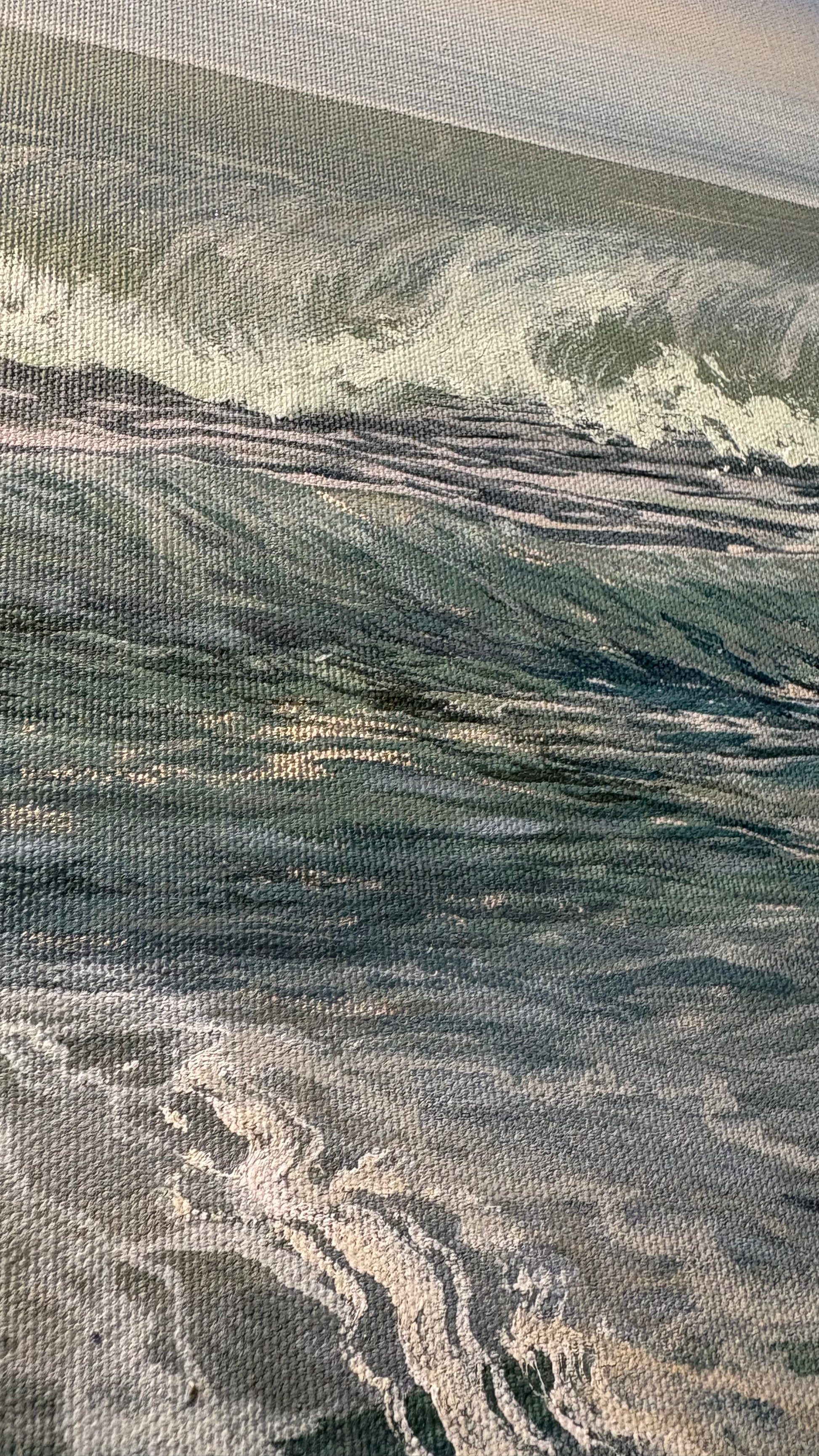 Brace yourself for “Diamonds on the Sea, Seaton.” as it transports you to a Cornish beach where vibrant blue and turquoise waves roll onto a deep beige sandy textured shoreline! The crystal blue water and sky will add a touch of energy & brightness to your home. Catch the Cornish breeze and bring home a piece of paradise!