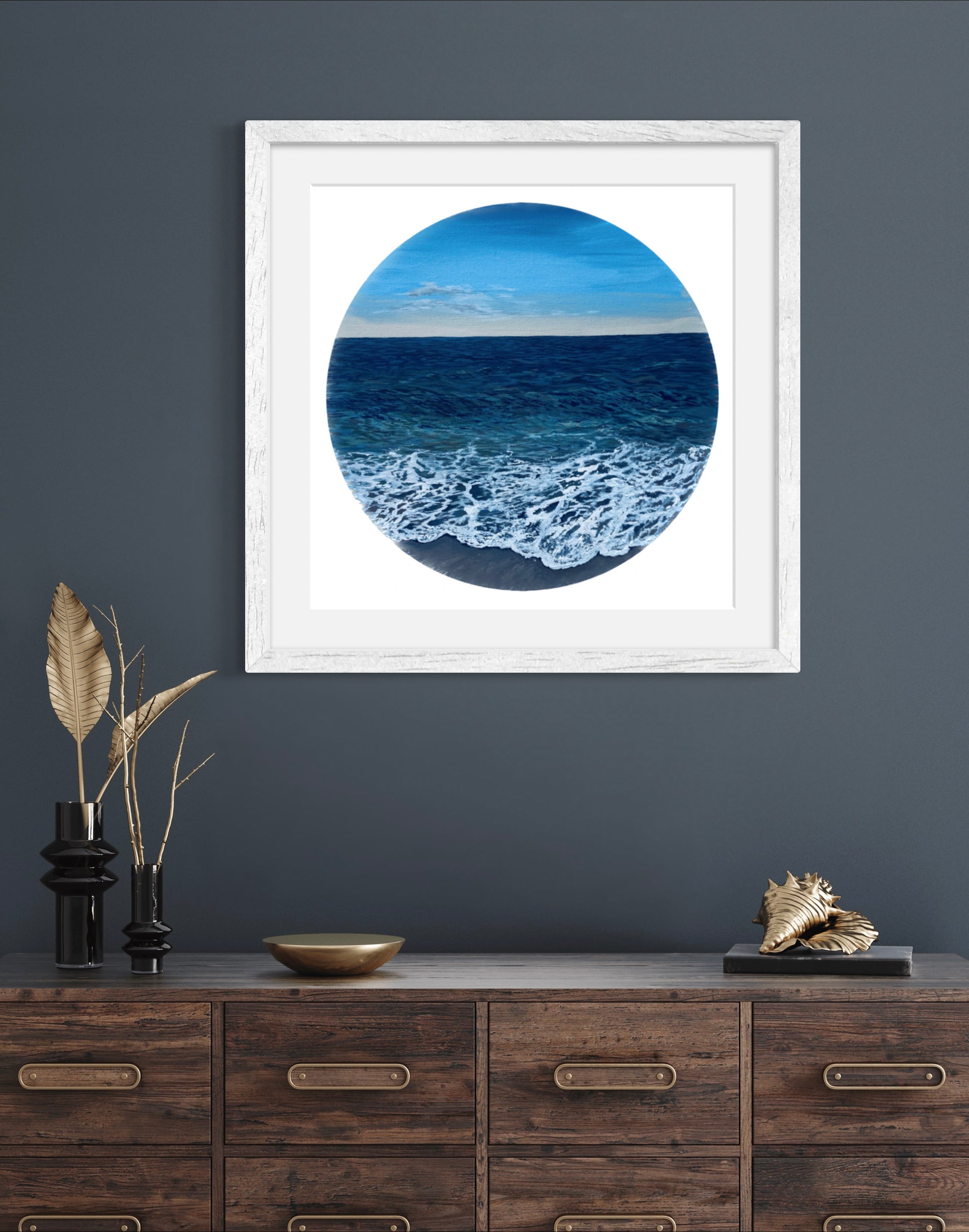 Wilder Shores: Realistic Ocean Coastal Porthole Round Beach Fine Art Giclée Print